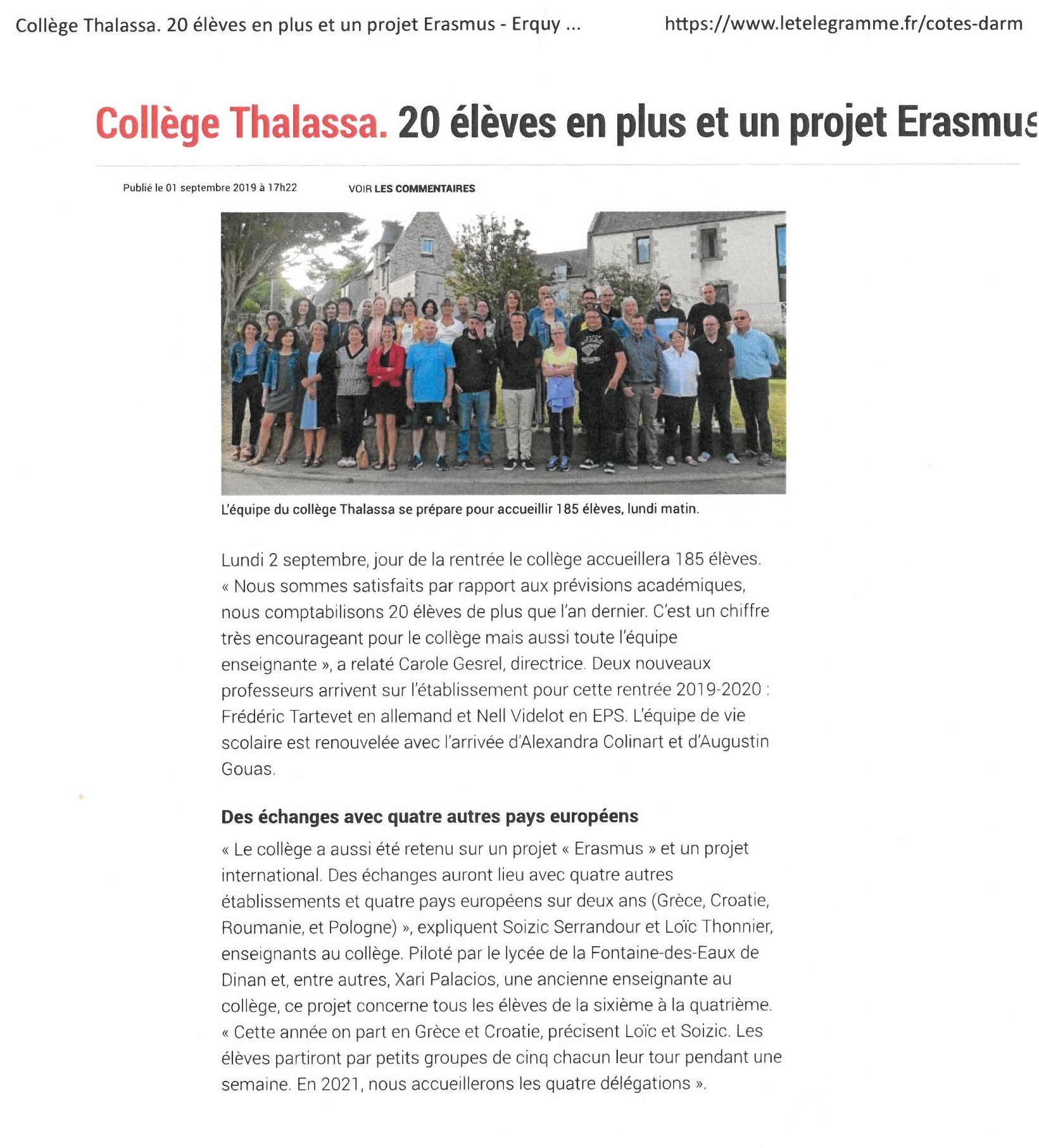 L’ensemble des élèves est rentré le lundi 3 septembre.