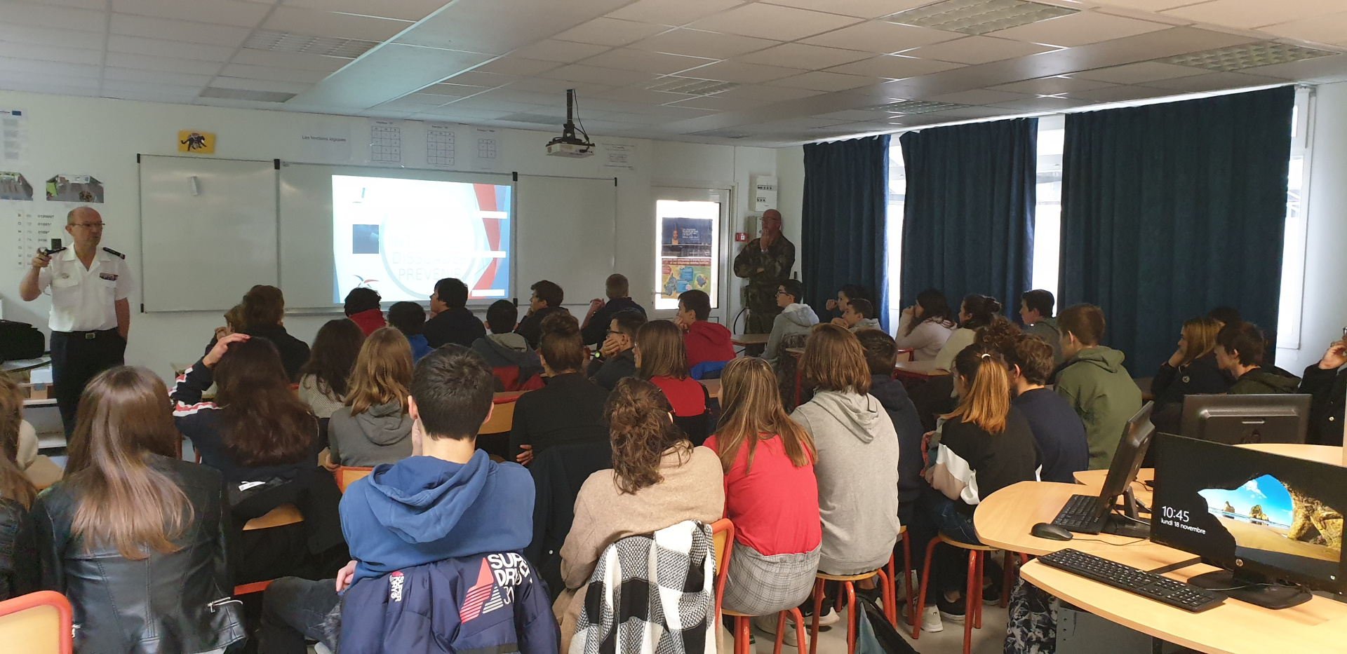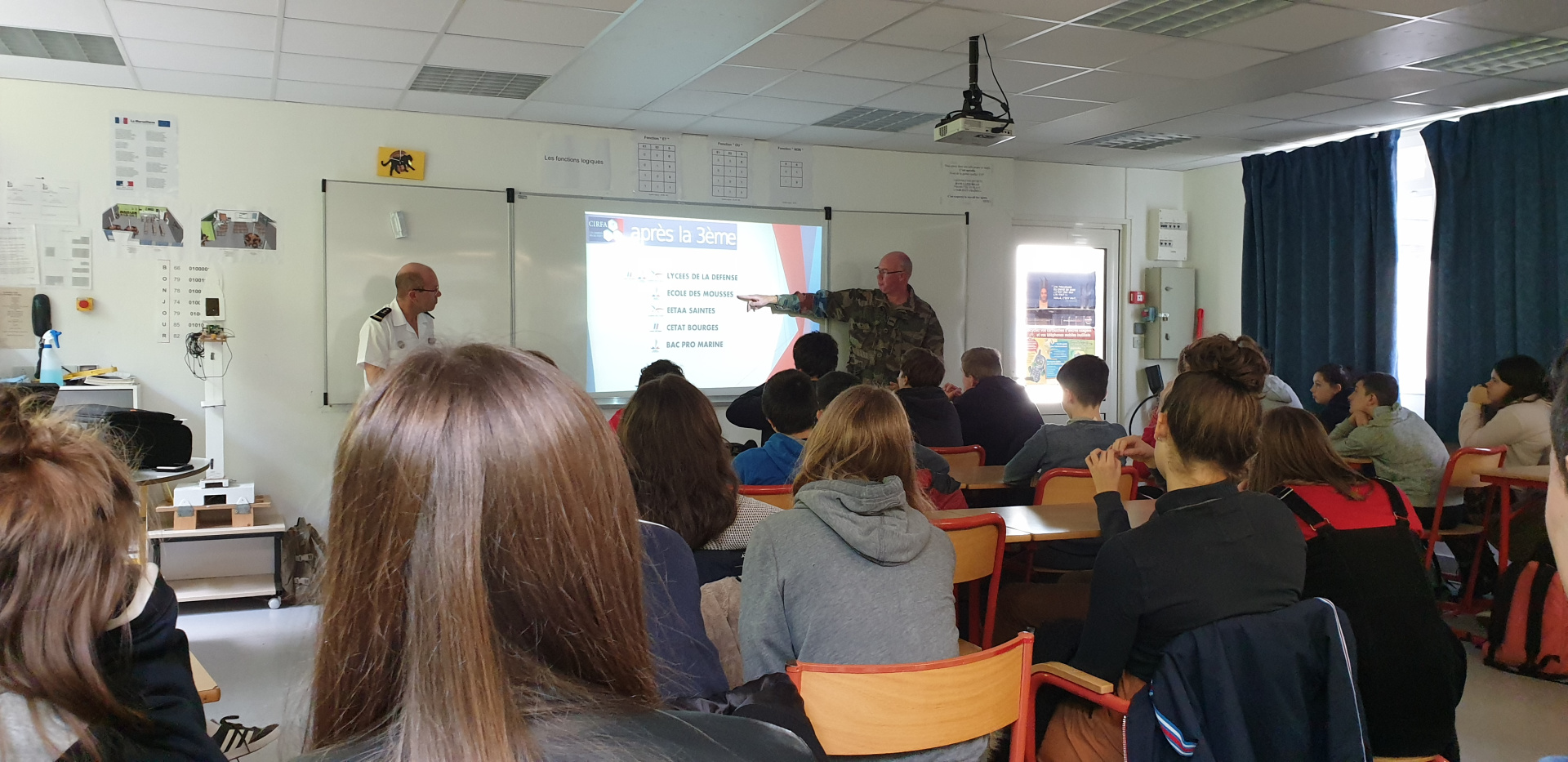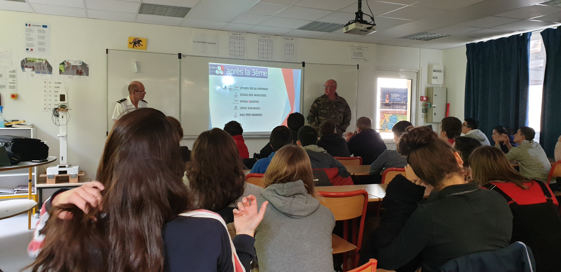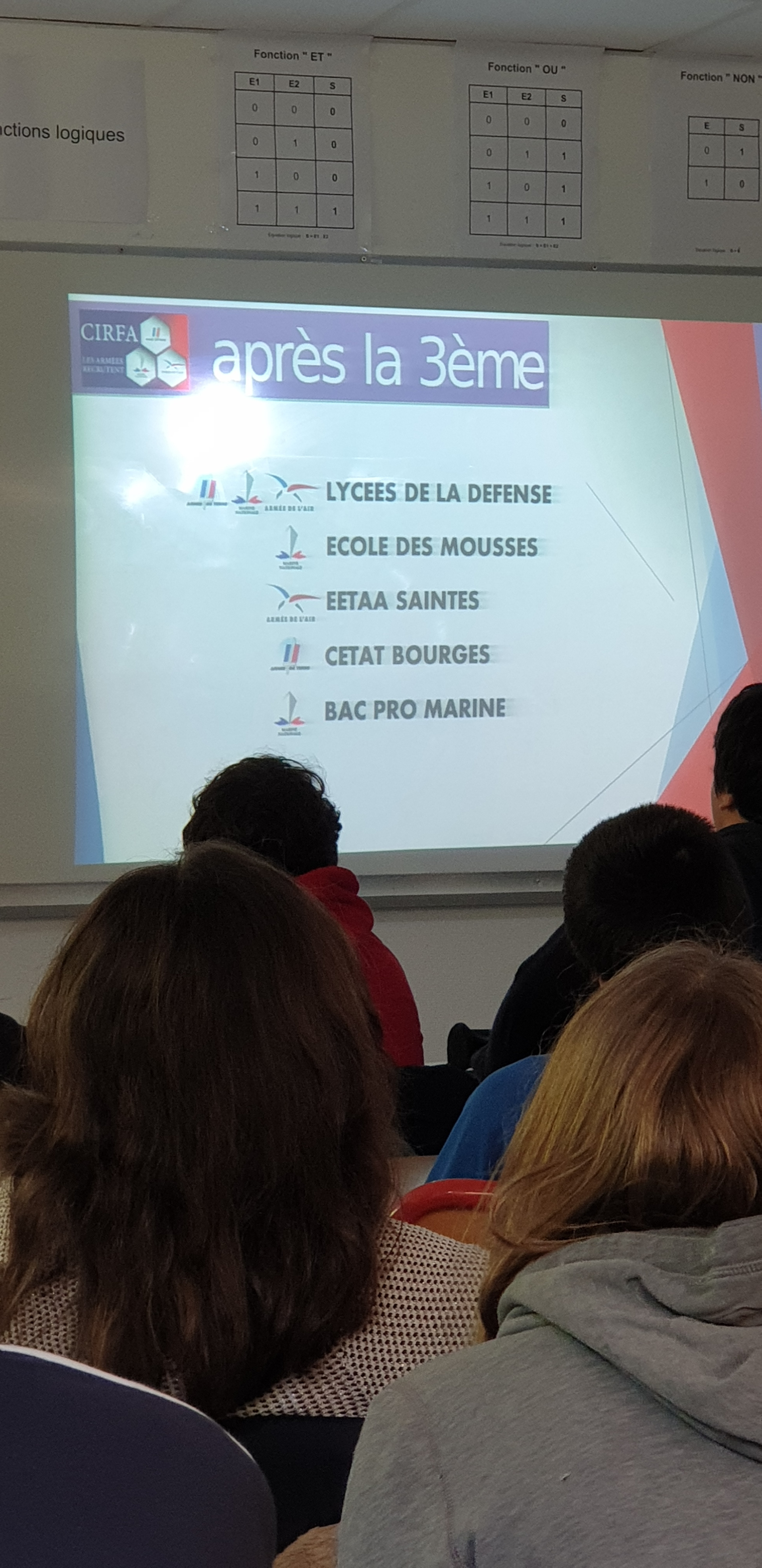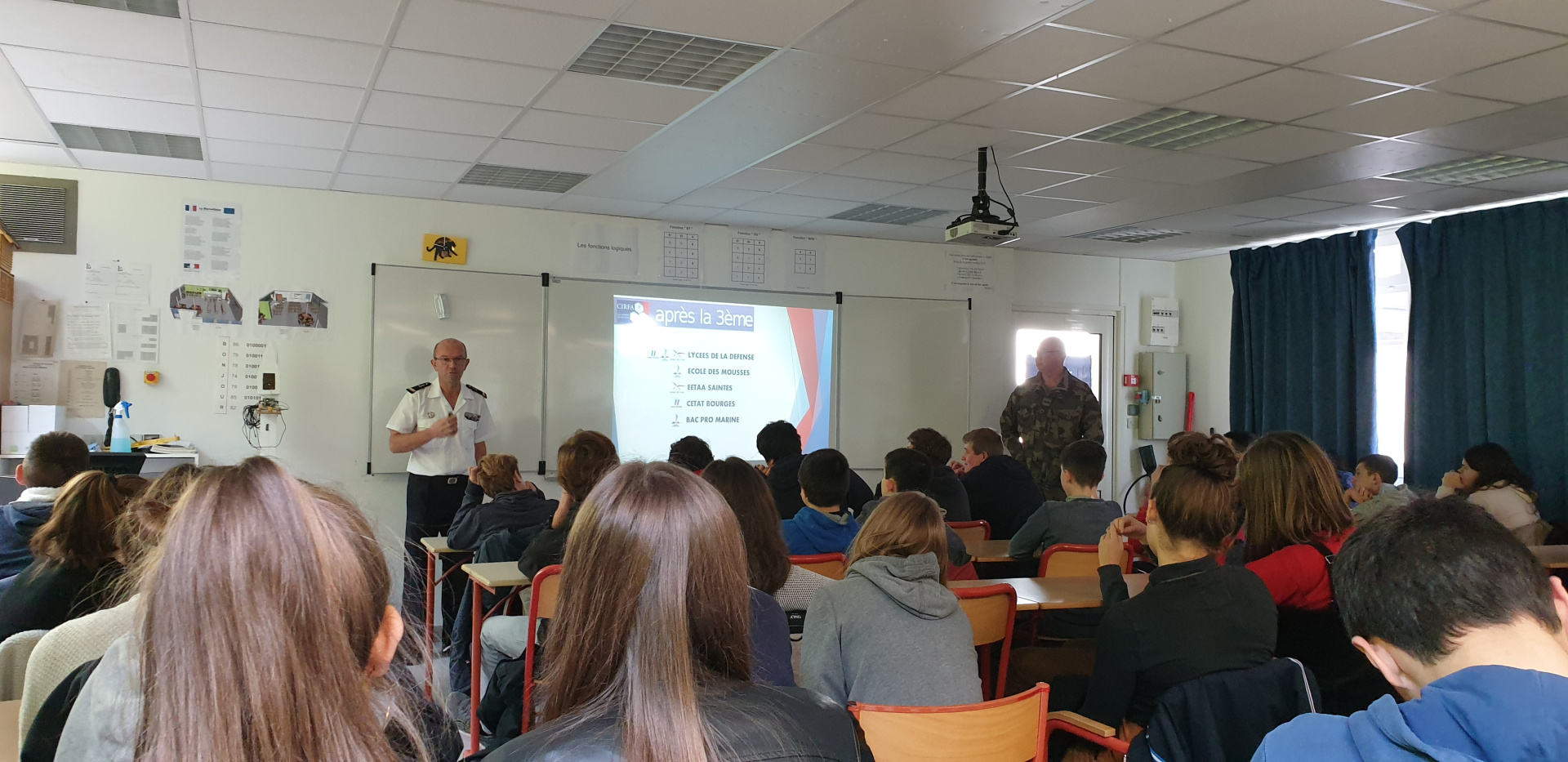 L’intervention du CIRFA (Centre d’Information et de Recrutement des Forces Armées pour les 3 armées (terre, air, mer) a pris la forme d’une présentation suivi d’échange sur 1.5h.