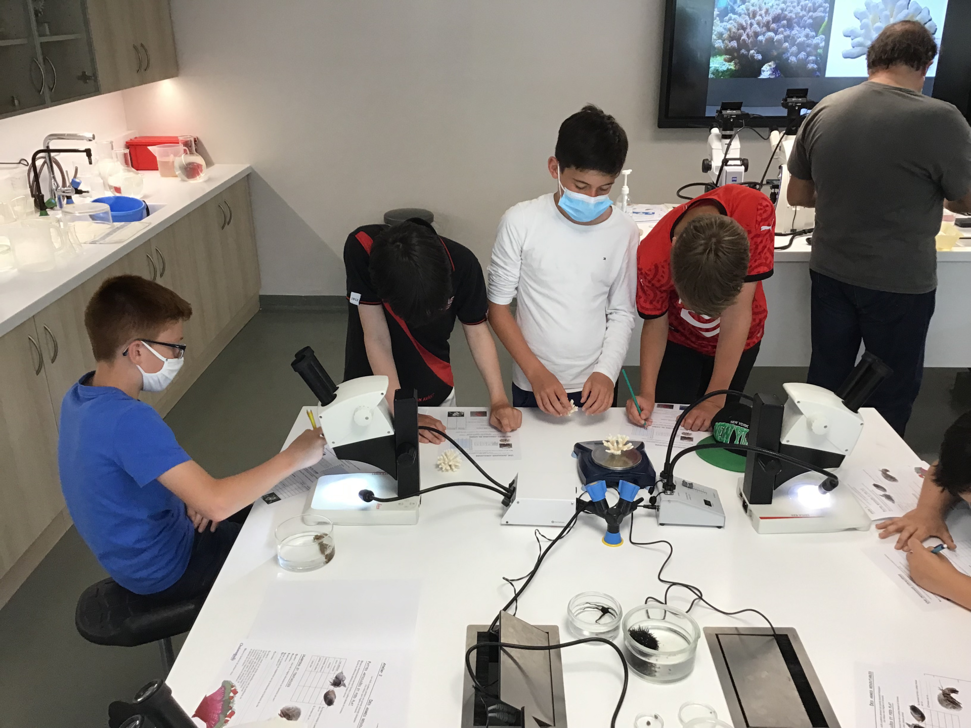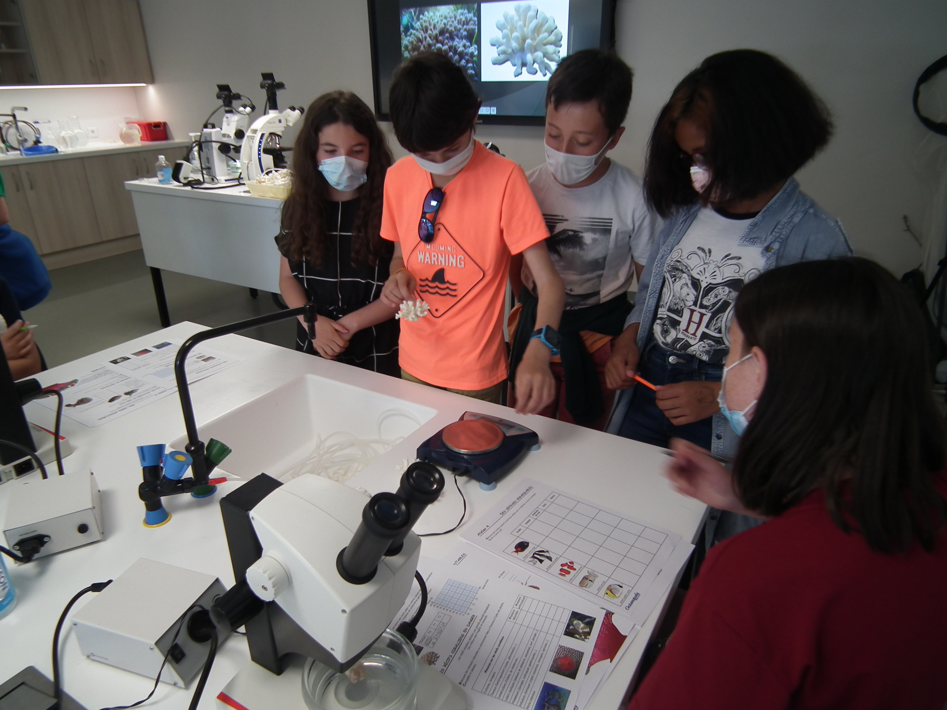 Ils se sont rendus en laboratoire afin de travailler sur "LES RÉCIFS CORALLIENS EN DANGER"