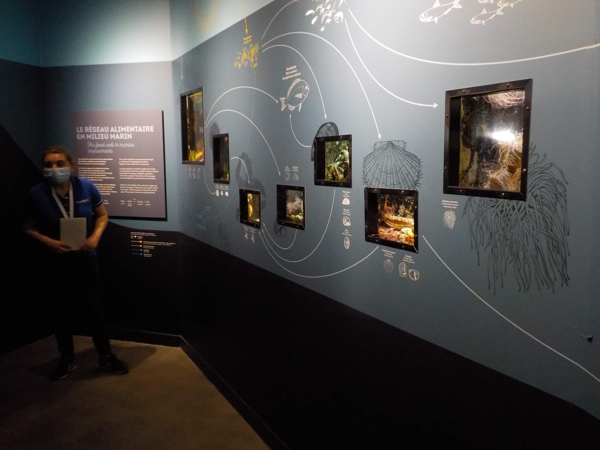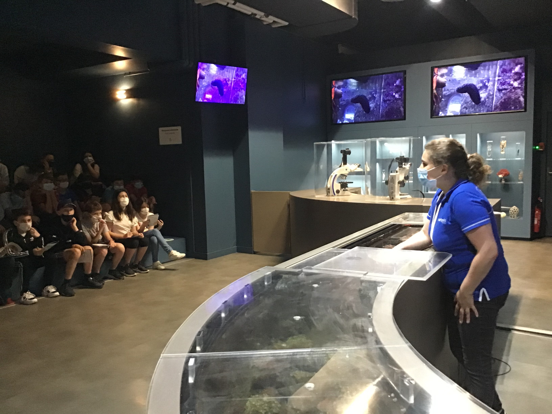 Salle de travaux pratiques équipée de paillasses et d’aquariums alimentés en eau de mer. Matériel vivant. Matériels biologiques préparés. Matériels optiques, audiovisuels et informatiques. Document élève.