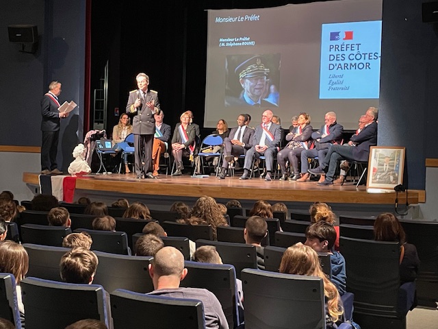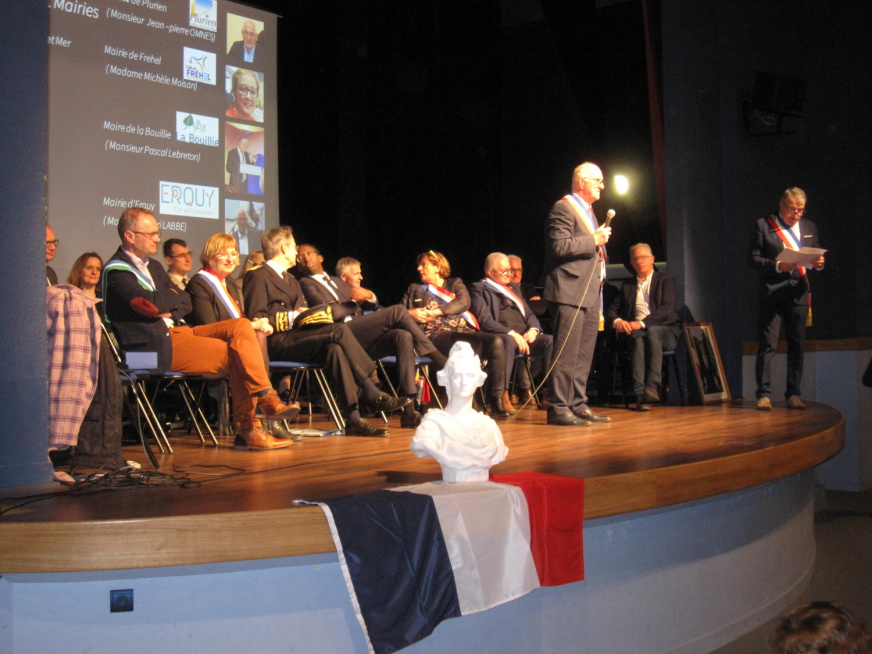 Cet près midi, nous avons vécu un moment très particulier : Un rendez-vous avec les acteurs de la République !! Nous avons décidé , Monsieur Pascal Lebreton, maire e la Bouillie , et moi-même de faire partager à nos jeunes les Valeurs de la république !! Dans ce cadre du Comité d’éducation à la Santé et la Citoyenneté , cette action avait pour but de faire rencontrer les acteurs de la République avec nos jeunes du territoire d’Erquy. Pour cela , nous avions convié un grand nombre d’acteurs de la République , du maire jusqu’au ministre de la mer et de la biodiversité, en associant également les représentants de l’Education Nationale , inspecteurs du second degré et du premier degré , ainsi que monsieur le Directeur Académique. A cela s’ajoutait Monsieur le Préfet des Côtes d’Armor., ainsi que le représenatnt de l’armée pour le département. Dans la salle se tenait 120 élèves primaire et collégiens. Les échanges ont été forts au sens républicain, les Acteurs de la République se sont prêtés de bon cœur, au jeu des questions réponses élaborées par les jeunes élèves. Dans le cadre du Conseil Ecole-Collège , nous avons pu voir , avec les professeurs du premier degré , comment les amener de façon le plus naturel possible..