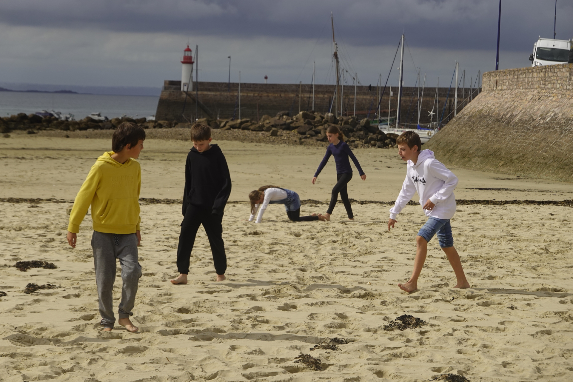 Rassemblement des élèves dans la cour auprès des accompagnateurs et départ à 8h20 du collège pour un rendez-vous à 9h à la criée pour les groupes 1 et au petit parking de la plage des Lourtuais pour les groupes 2. Les élèves se sont rendus à pied sur les lieux concernés.