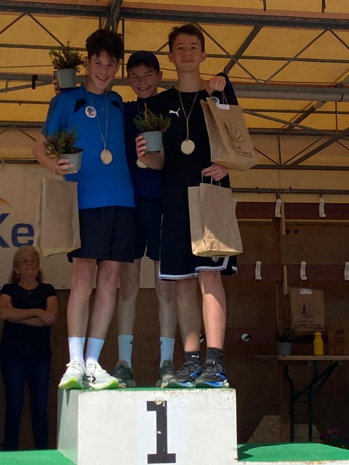 Un grand bravo à Martin et Alexandre, élèves de 3es au collège, d’avoir réussi à se hisser sur le podium de la course de Landes et Bruyères 2025.